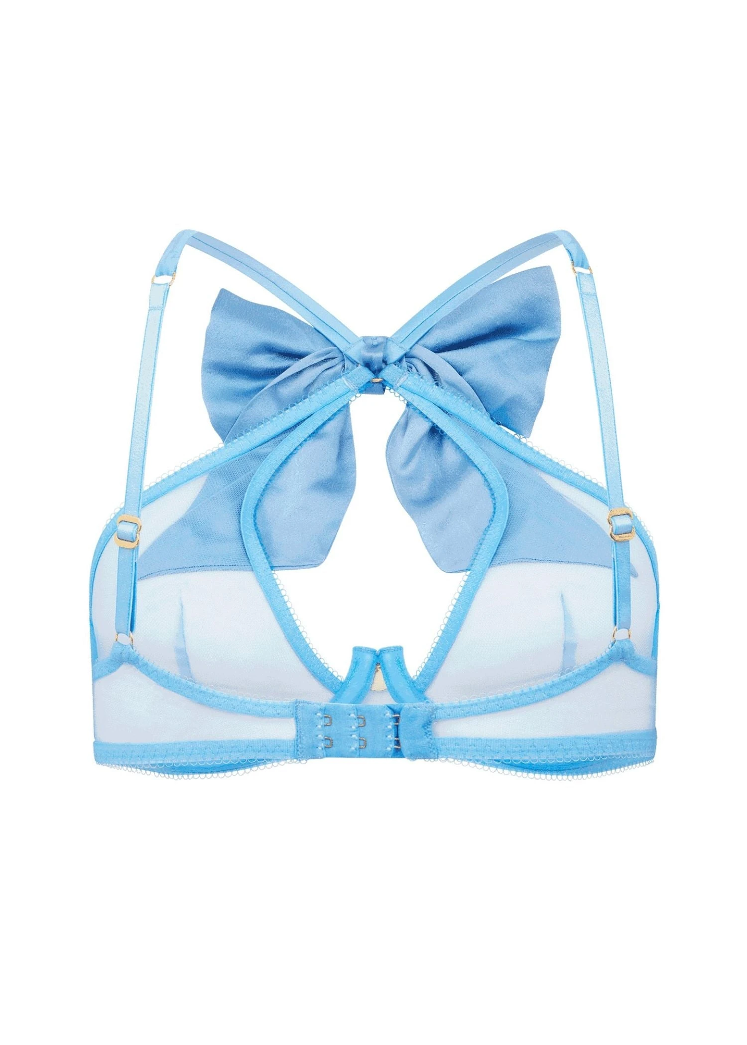 Oriana is the mistress of sweet seduction. Oriana adds a high-fashion twist to an enchanting lingerie fairy tale. Silk bows lay atop Italian tulle for an opulent celebration of desire. This luxurious underwired design offers strong support with the beauty and comfort of irresistibly soft tulle and velvet.