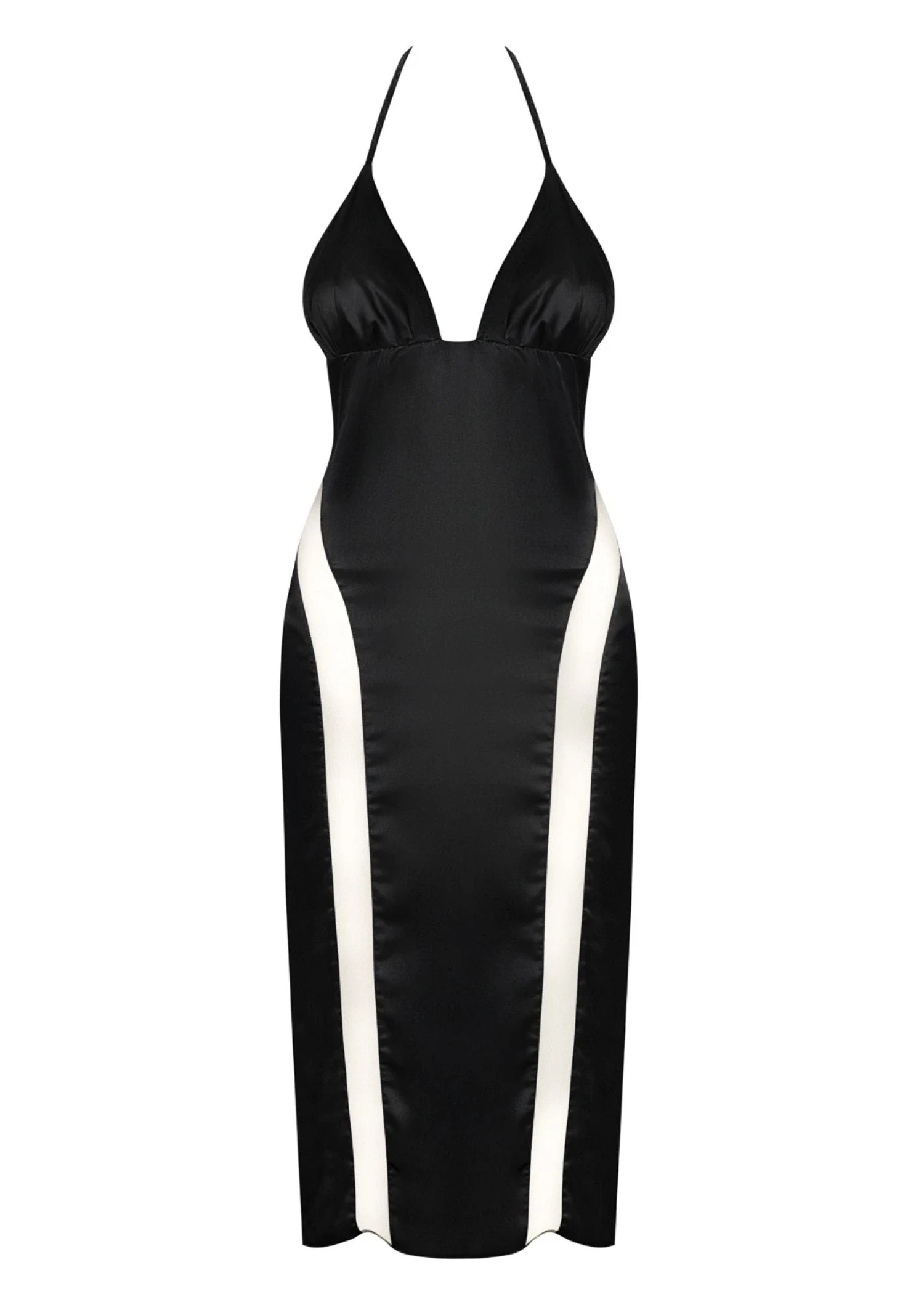 Dress to impress in the Angelina Dress. A stunning outerwear piece made of satin panels and provocative mesh strategically placed to unveil and highlight your curves in all the right places.