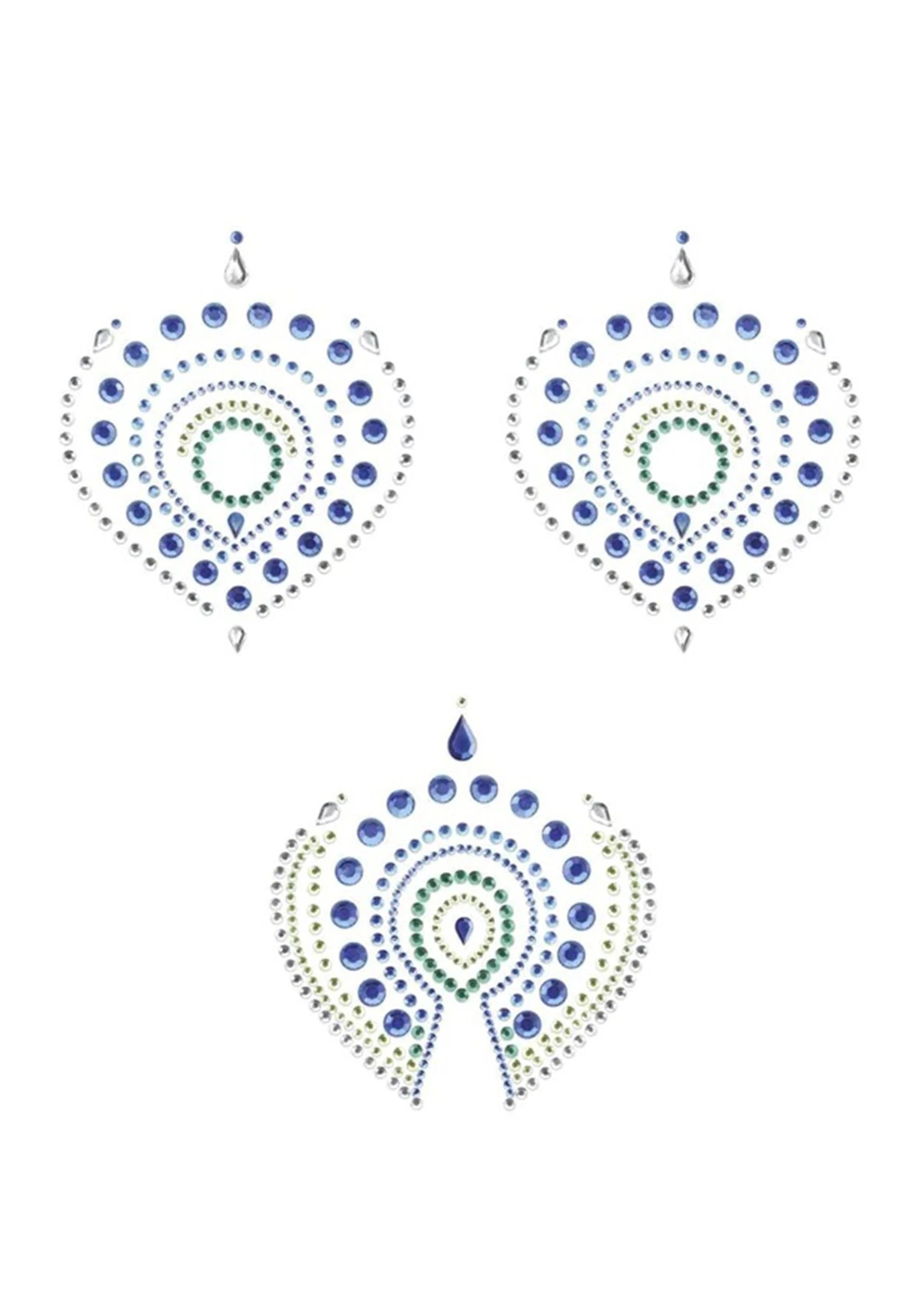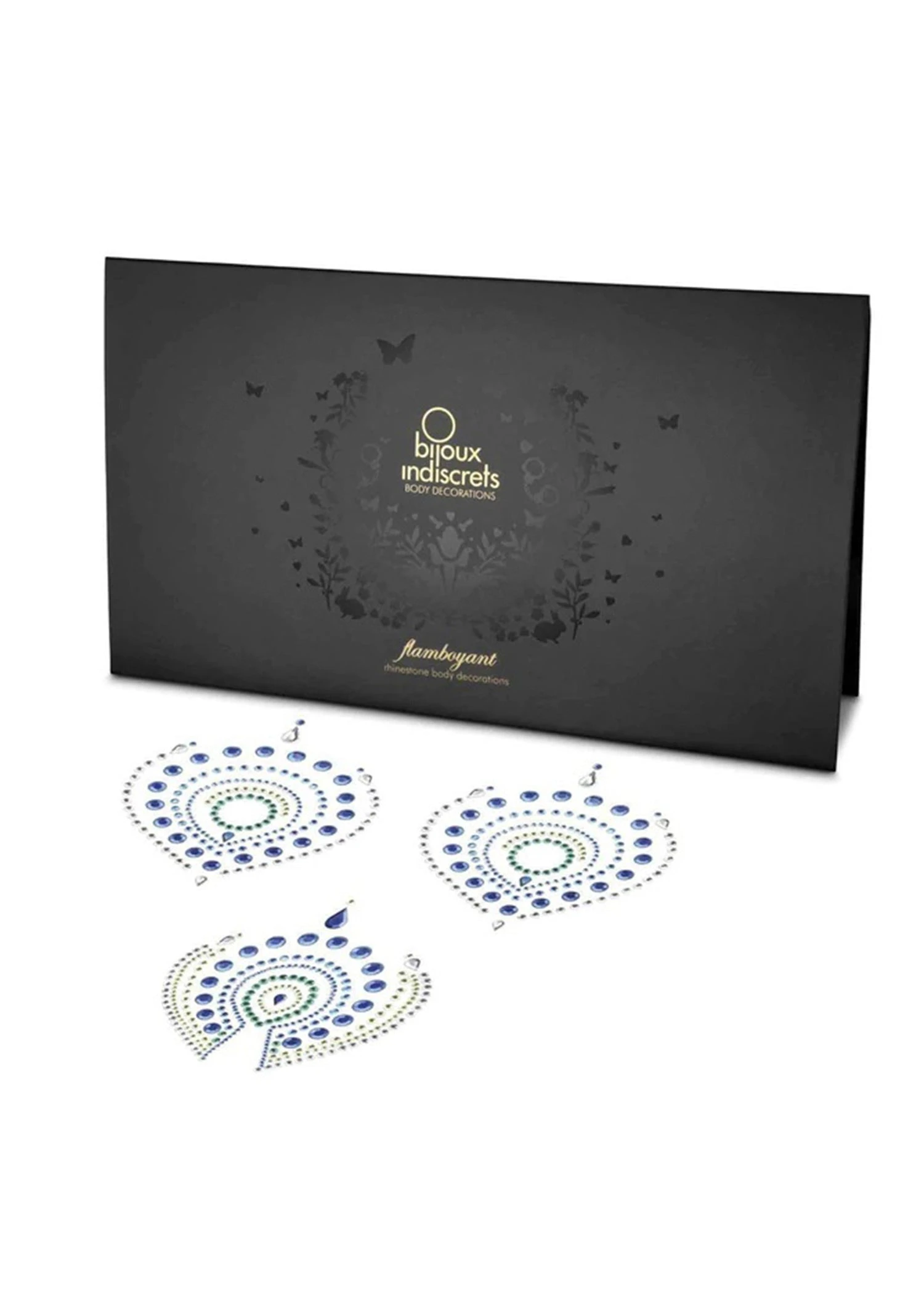 What’s better than being naked? Being naked and adorned by Flamboyant’s self-adhesive rhinestone body decorations. Glamour up your skin with these beautiful shapes inspired by the peacock feathers.