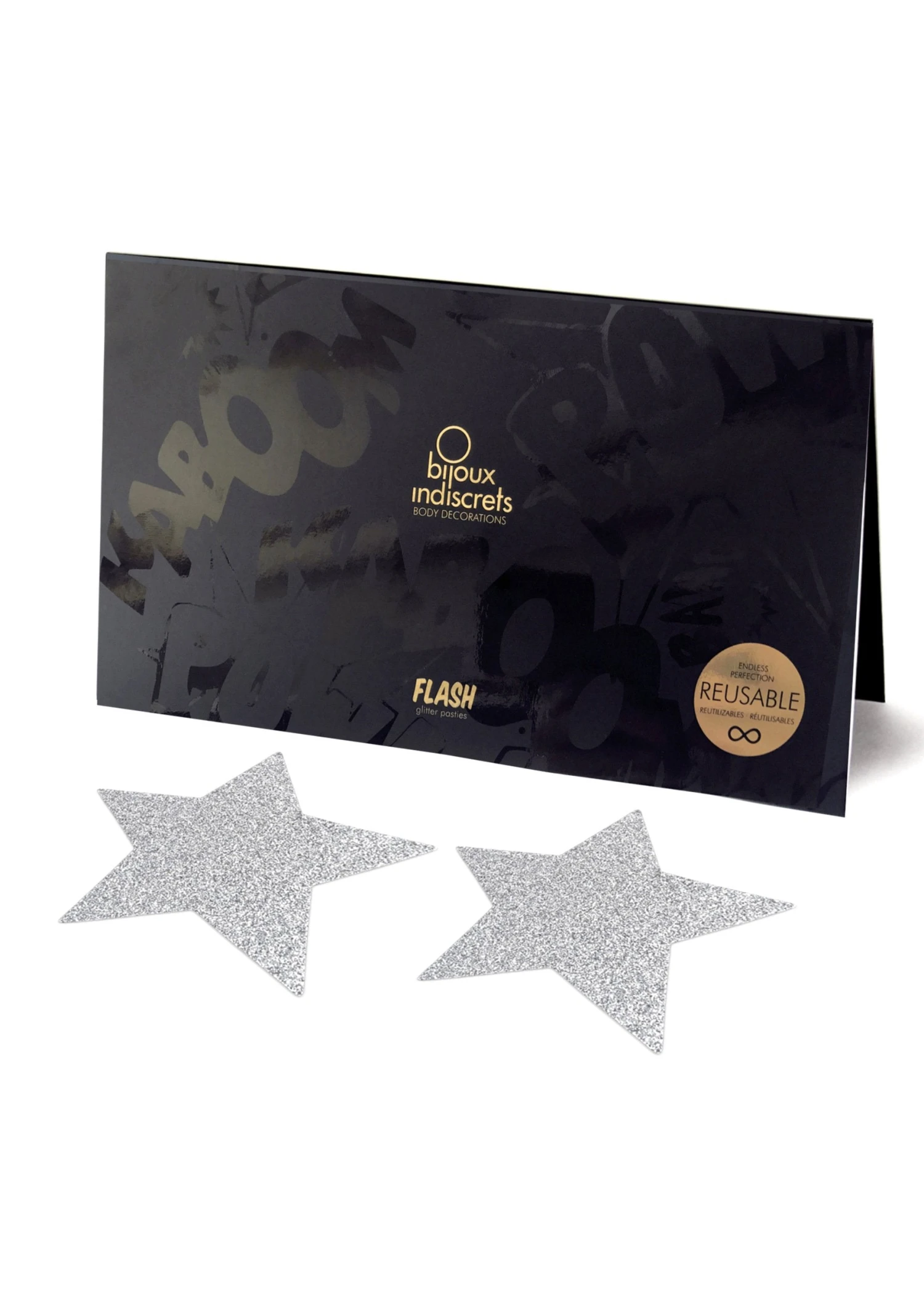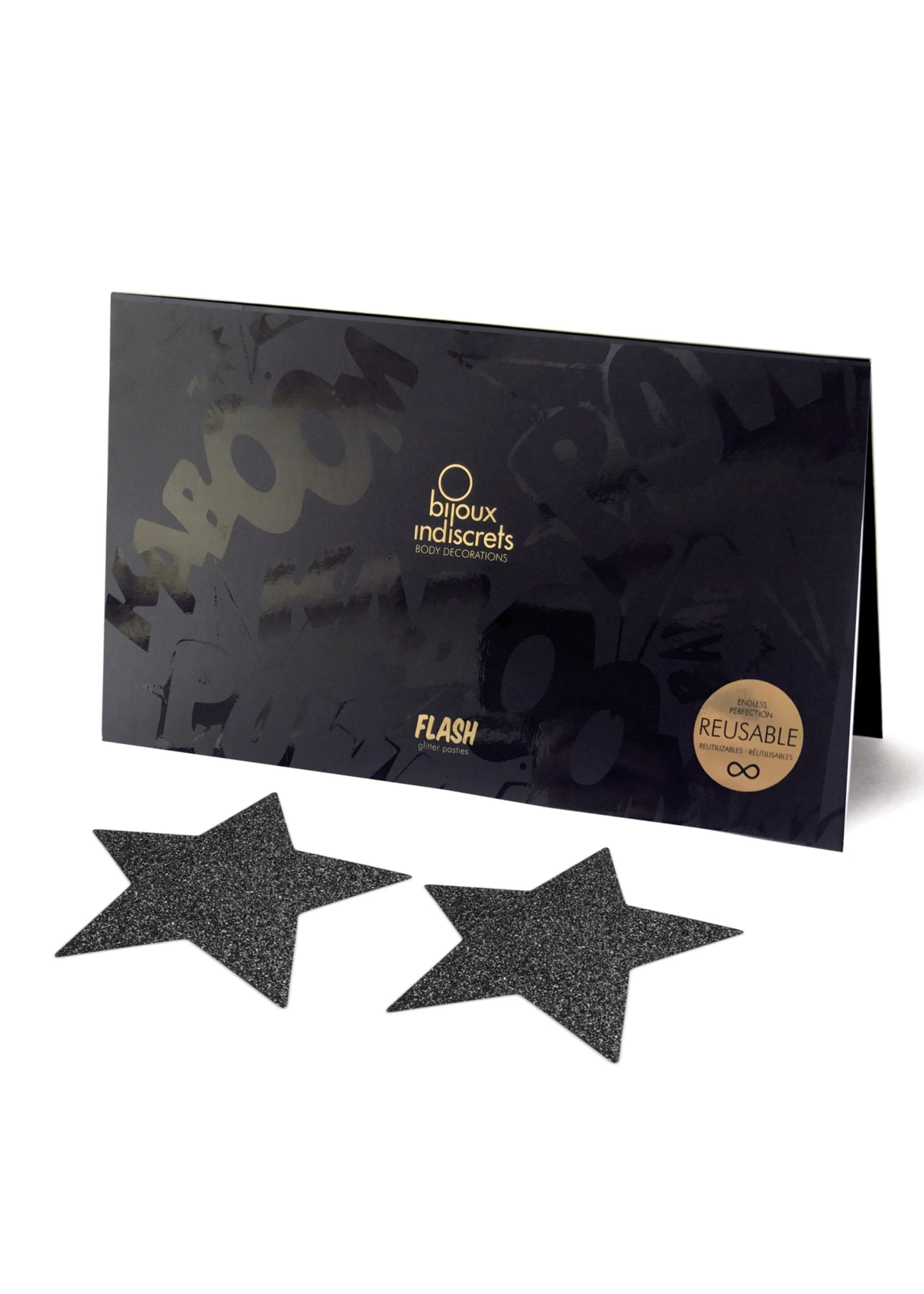 These Star Glitter Nipple Reusable Covers are everything a woman needs. Wear it with suggestive lingerie in the boudoir or even in place of your bra in a plunging top for a nights out to flash a suggestive sparkle and make him succumb to your charms. Available in Gold, Silver, and Black, get one now if you don’t already have it.