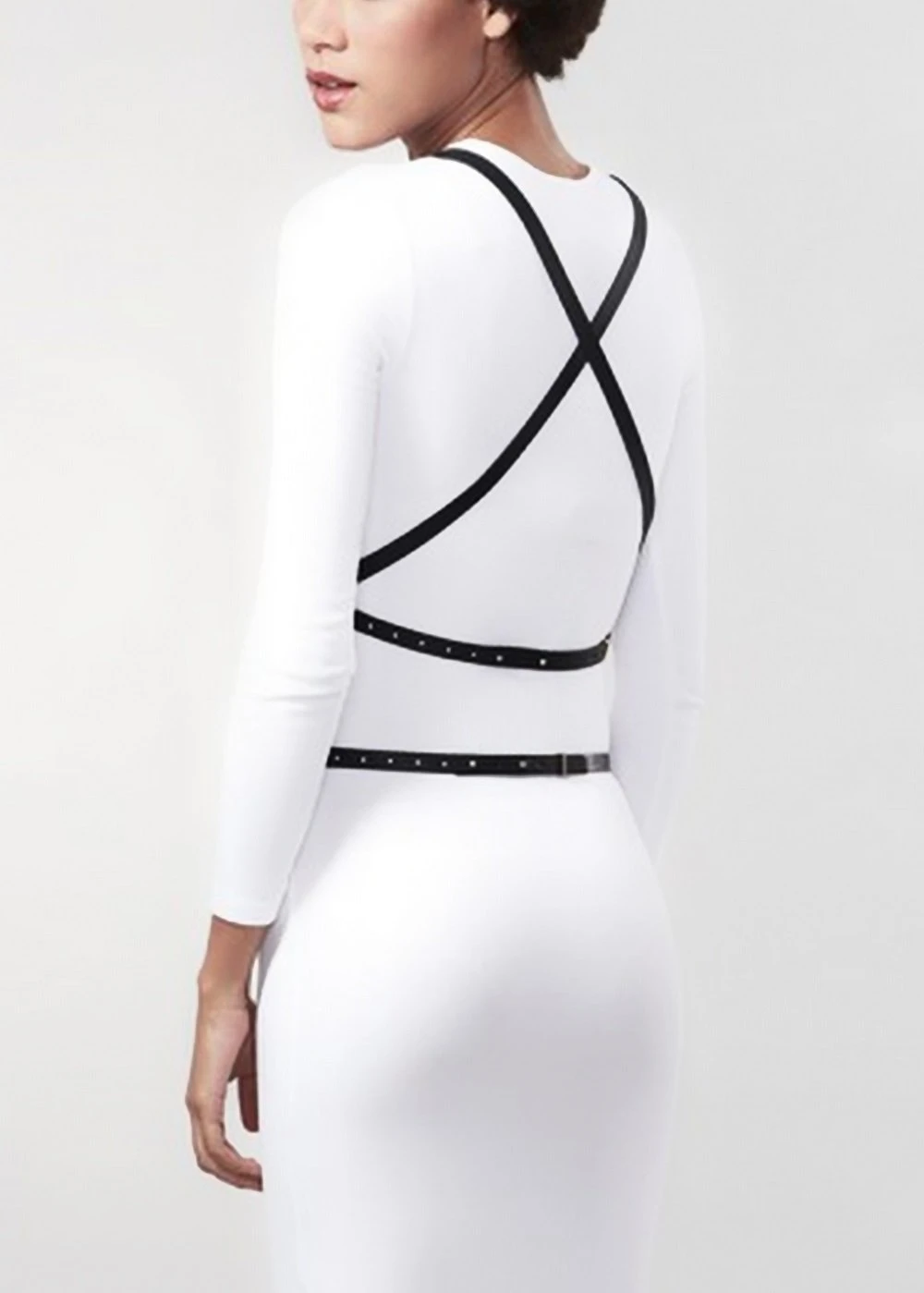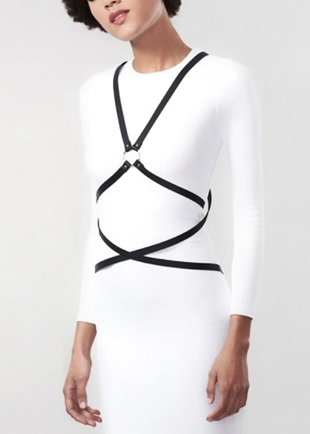This erotic and fashionable harness is great for a night out, or in. Made from 100% cruelty-free vegan leather and offering high adjustability to accommodate most bodies. Wear it on your bare body, over your outfit, or as a lingerie set.