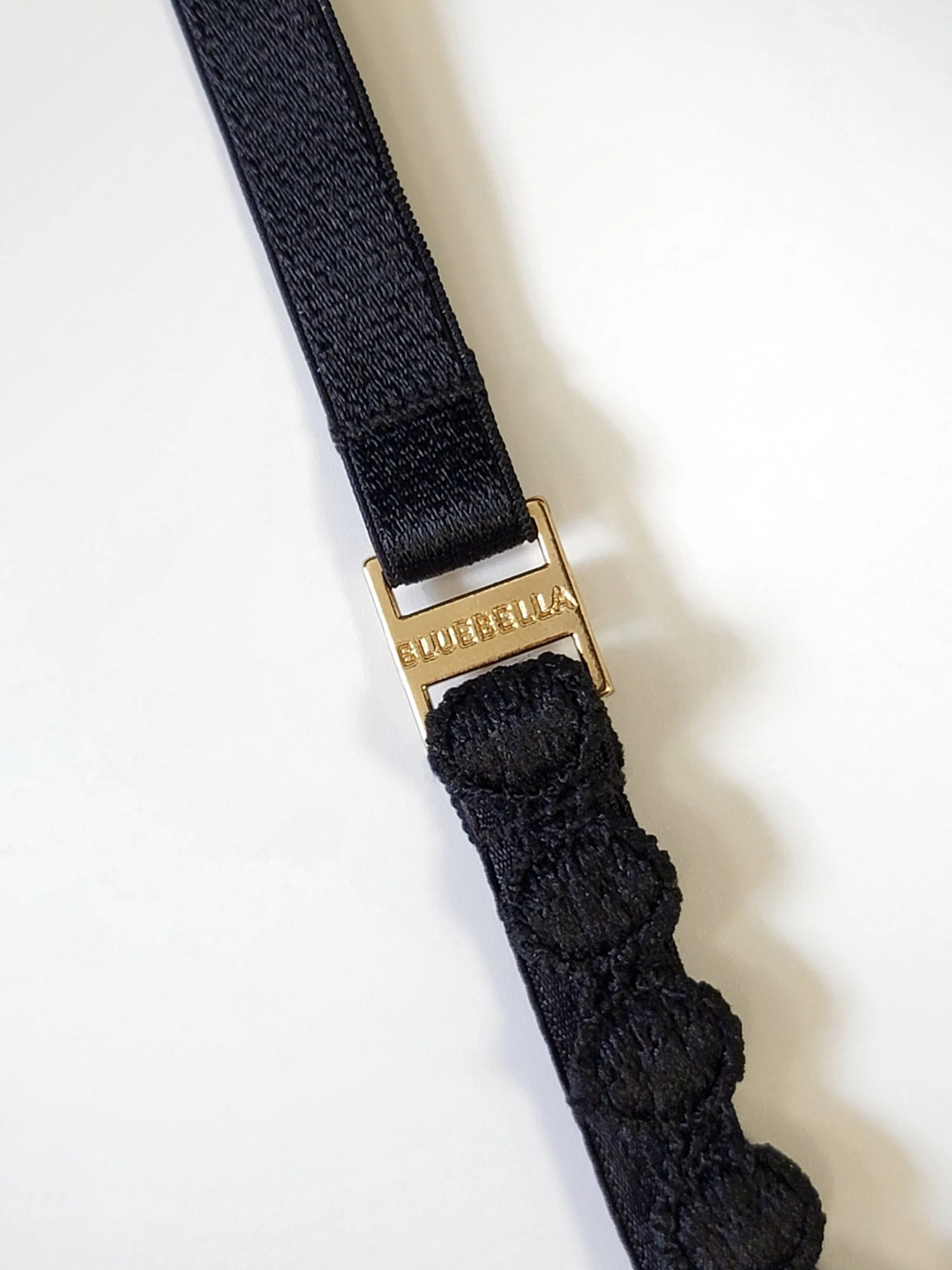 Open bra with embroidered lilies and diagonal straps on the cups for a delicate look with a modern edge. Diagonal bands accented with gold-tone hardware.
