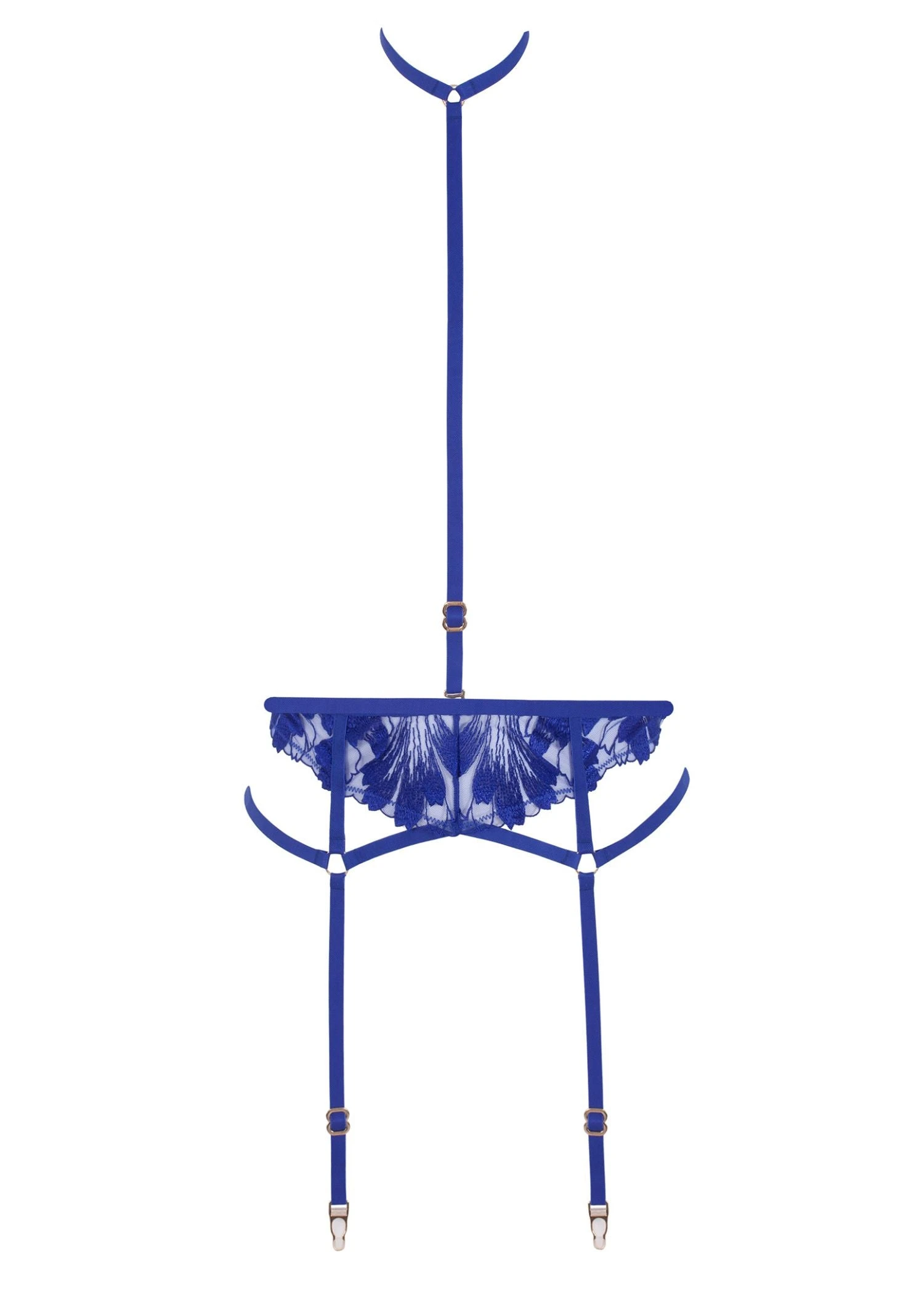 The Colette suspender harness is a stunning design that offers versatile styling possibilities thanks to its detachable components. Intricate floral embroidery immediately draws the eye to the belt, while the gold-tone details lend an elevated touch to the overall look. Make sure to style this multitasking piece with the remaining pieces from the Colette collection for a look that’s romantic and provocative at once.