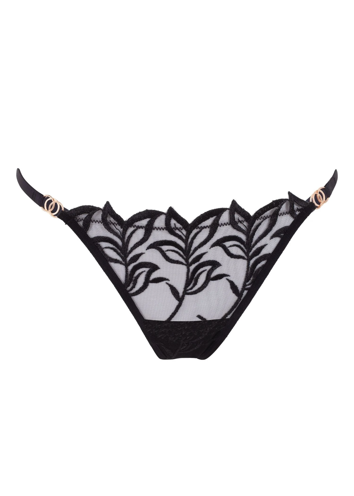 The Isadora thong is designed with a leaf-inspired pattern that speaks to you inner nature. This thong is finished with gold-tone hardware for a elegant , confident look. Complement this piece with the matching Isadora collection for a truly complete look.