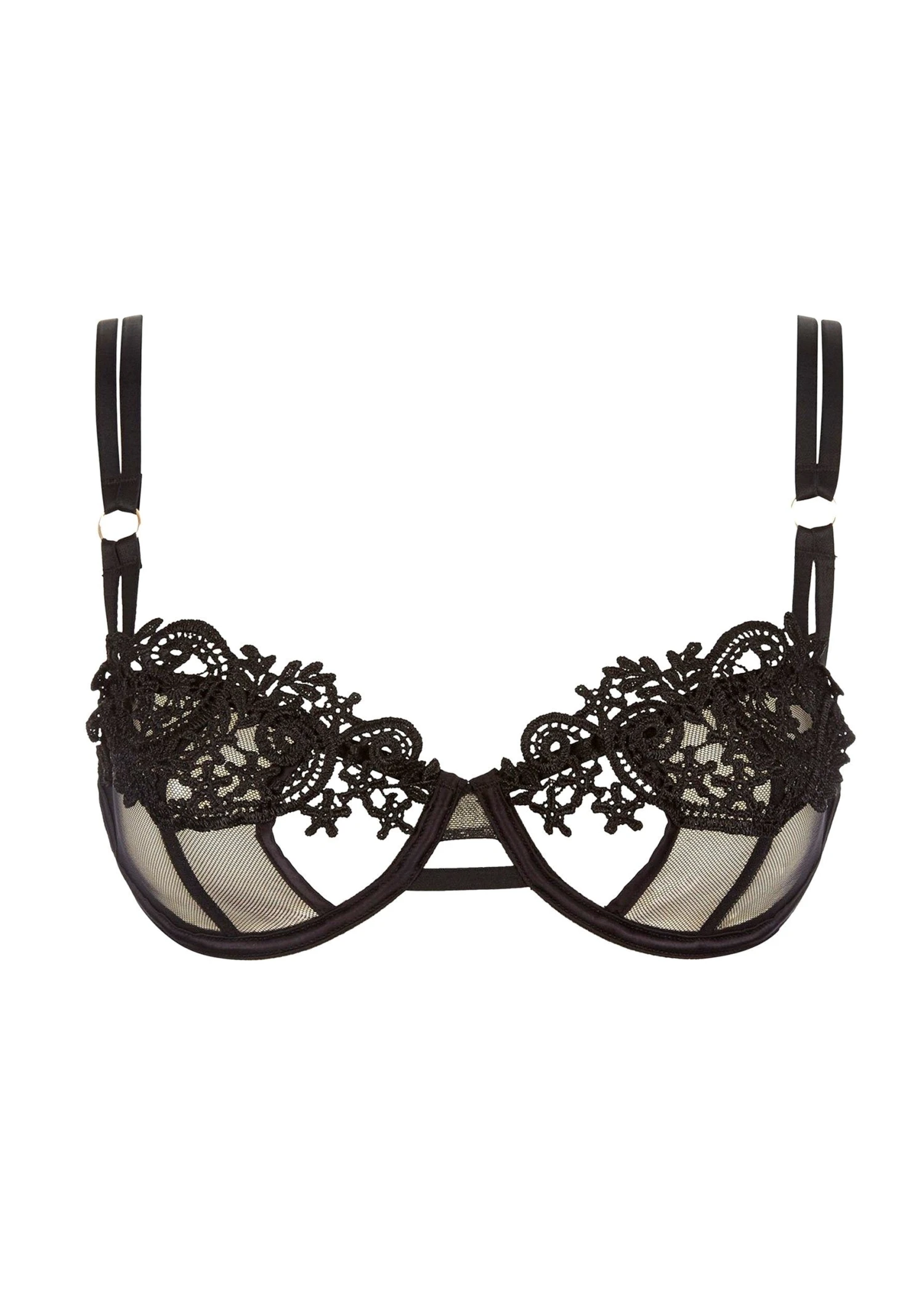 Alluring yet Delicate underwire bra with mesh and lace motif details.