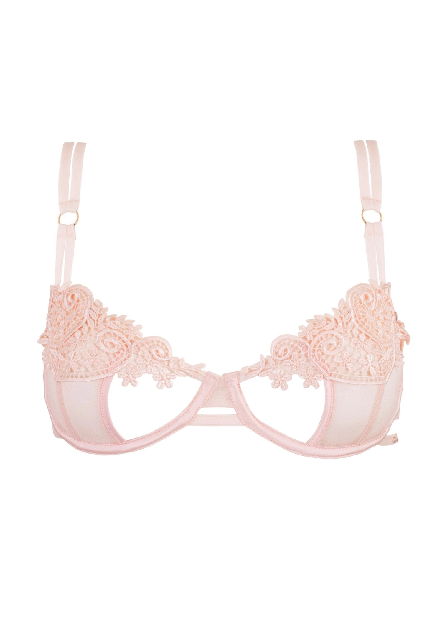 Don’t be fooled by her dainty pink colour and lace, those cut-outs add a provocative edge to your look. Pair it with the matching brief for an elegant look.