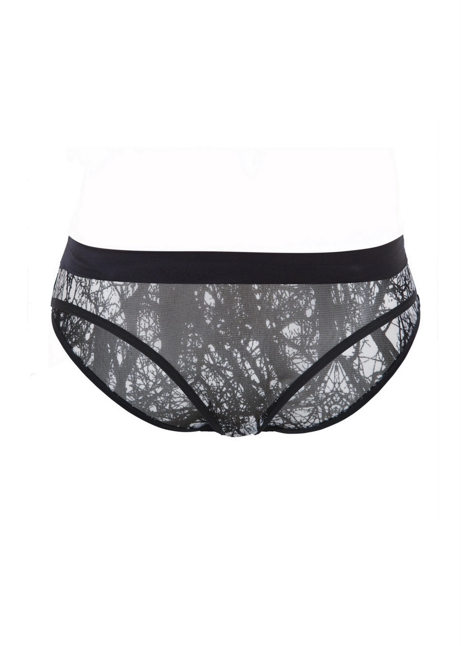 A Bluebella graphic print mesh brief with deep satin waistband. The sports-inspired brief is perfect for a modern look.