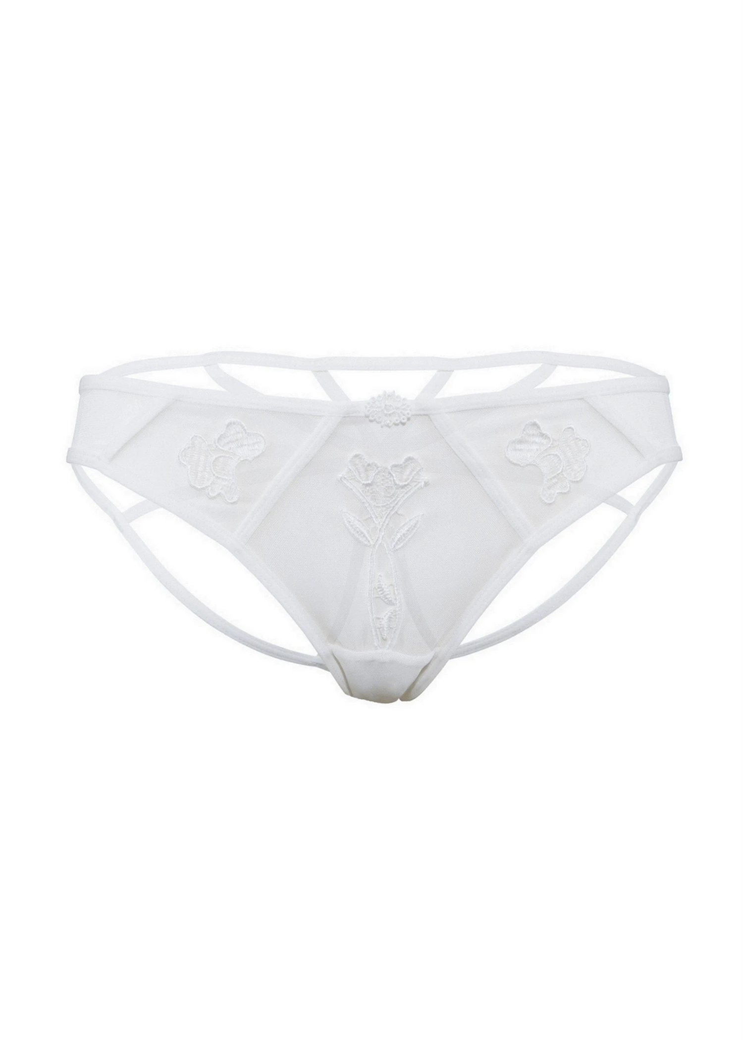 An exquisite Bluebella ouvert brief embellished with a guipure motif on the sheer mesh front. The brief features a delicate strapping back to complete the seductive style of this perfect piece of bridal lingerie for your honeymoon and beyond.