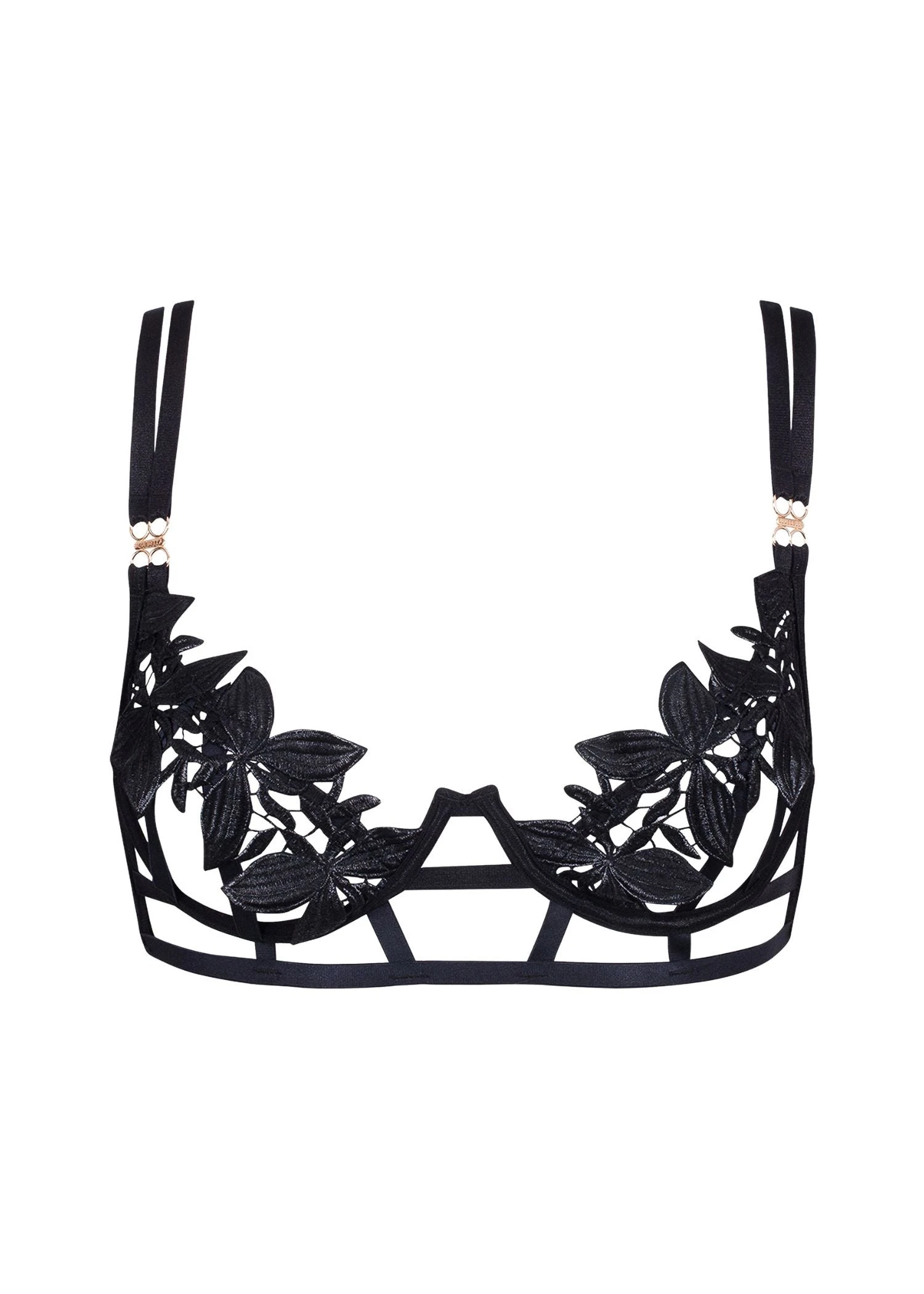 It’s all about the details when it comes to the decadent Ophelia bra. Catching the eye with a beautiful display of floral embroidery that amazes with its shimmering finish, this daring style rejects mesh in favour of bold cut-outs that highlight its expert construction. Are you looking to make a truly lasting impact? Make sure to style it with the matching Ophelia high-waist thong for a masterclass in seductive glamour.