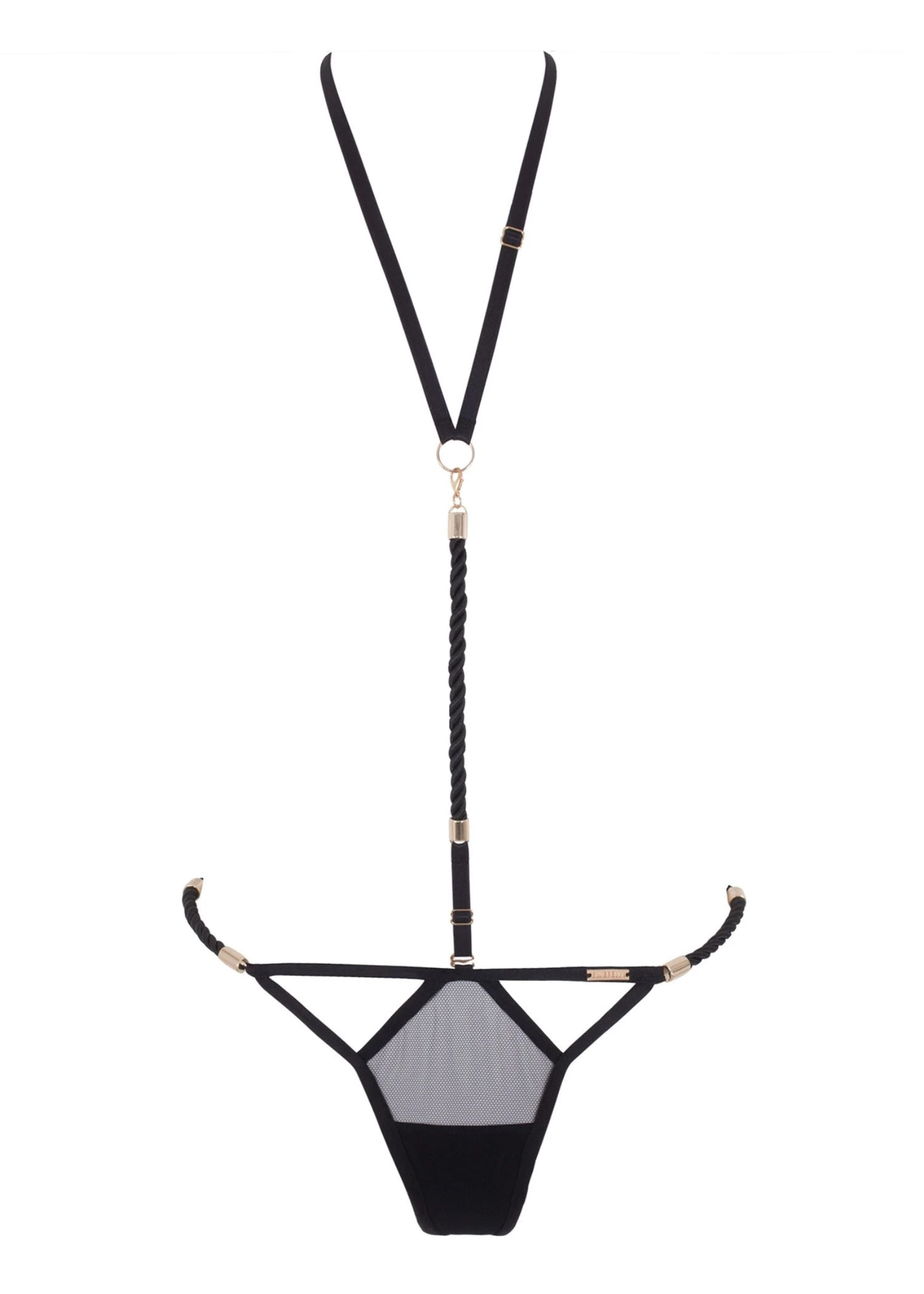 The Valerian open bra is inspired by the most daring lingerie desires, offering a cutting-edge hybrid of a bralette and a harness. Featuring multiple straps with braided sections and gold-tone hardware for a decadent finish, this unapologetically provocative number is certainly not for the fainthearted. Let your imagination take over, and style the Valerian bra with the matching pieces from the collection, like the harness thong or the open-back brief.