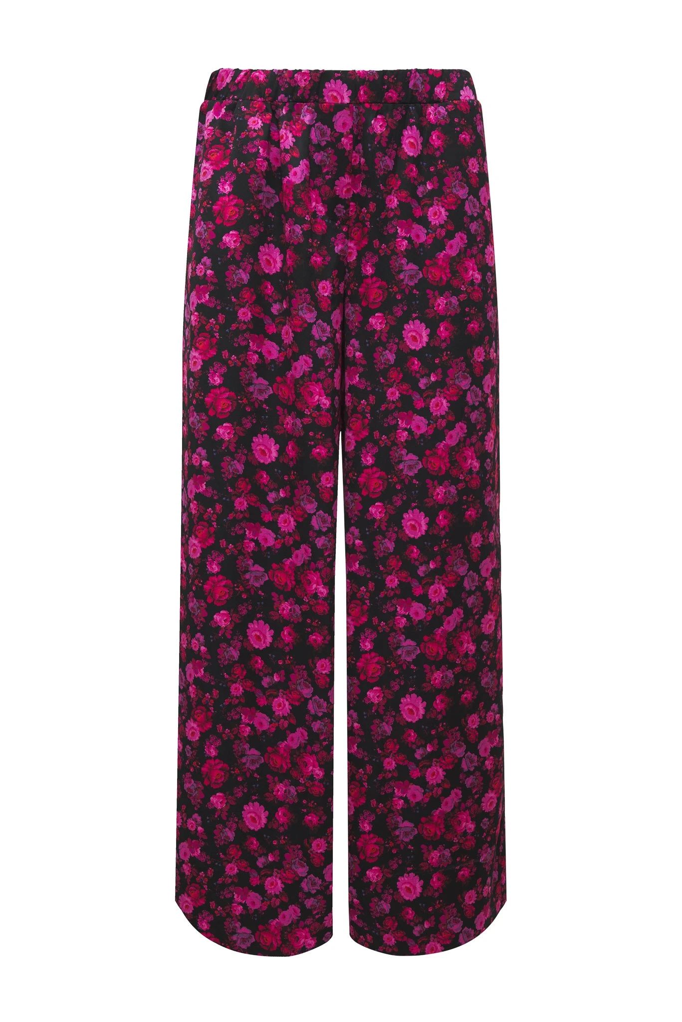 Flirty in shocking shades of pink and purple—these sumptuous satin pajama bottoms feature a wide leg and allover floral pattern. Meant to be paired with the matching top.