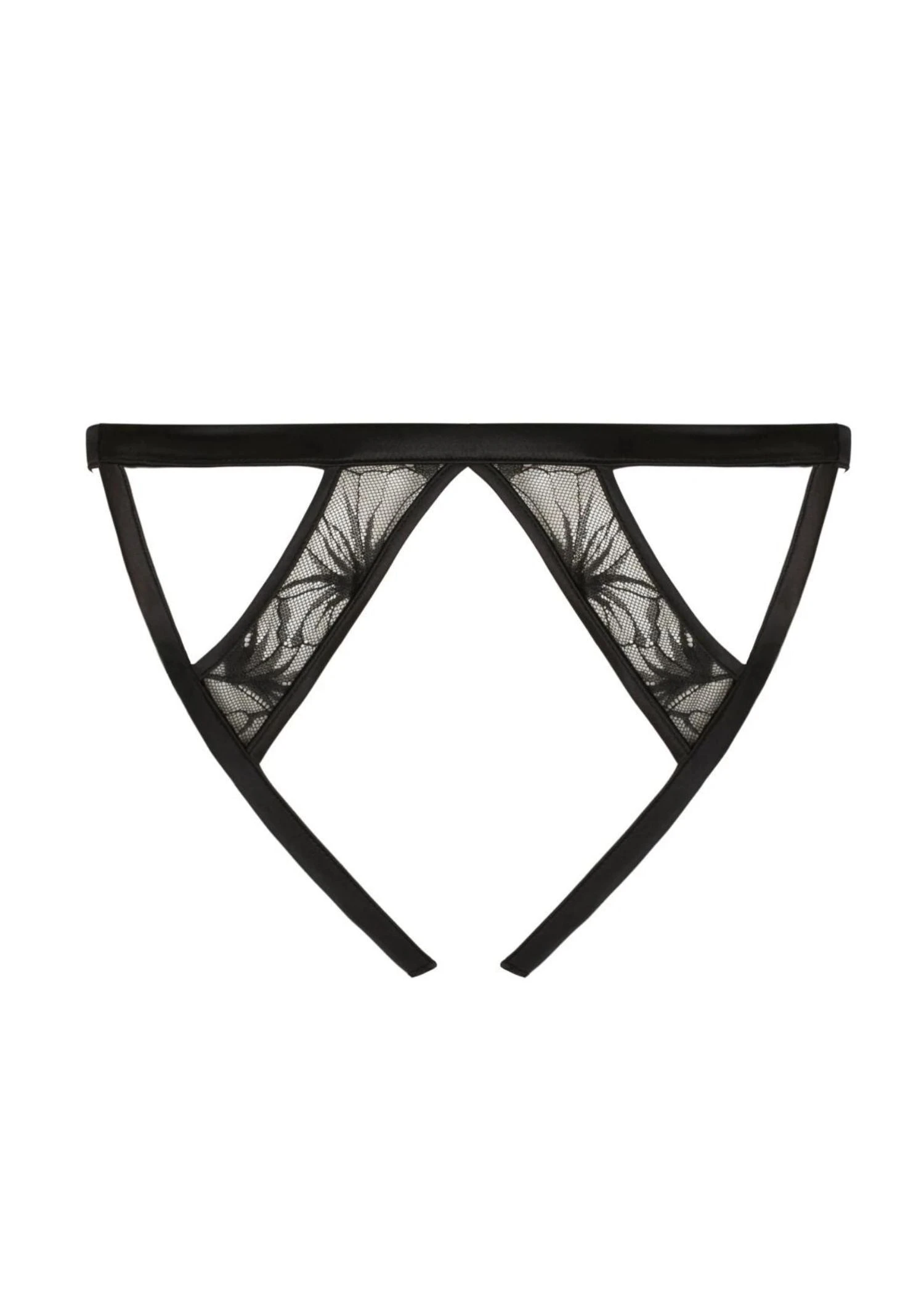 Add a little drama to your night with the Night on Broadway Open Brief, The deep black hue of the lace and silky satin caresses the skin, and the open back design highlights and frames your backside. A statement piece for your lingerie collection.