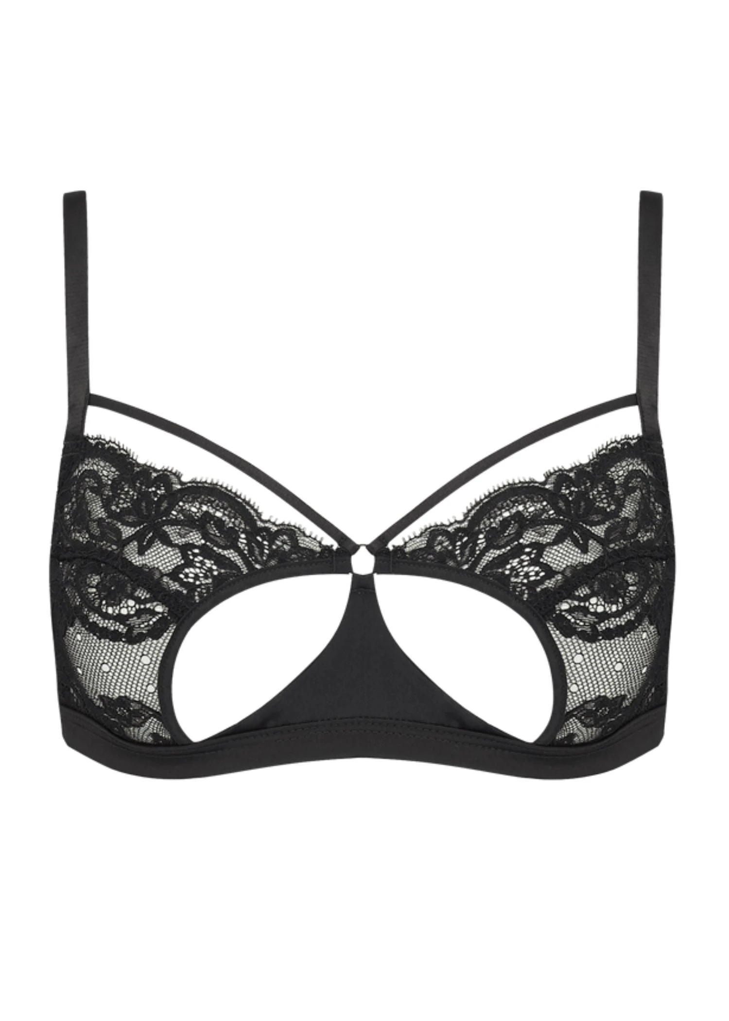 The Seraphine Soft Cup Bra draws the eyes with teasing cutouts and delicate textures of French Leaver’s lace and black silk. With slim silk straps placed on top of cups to enhance your silhouette.