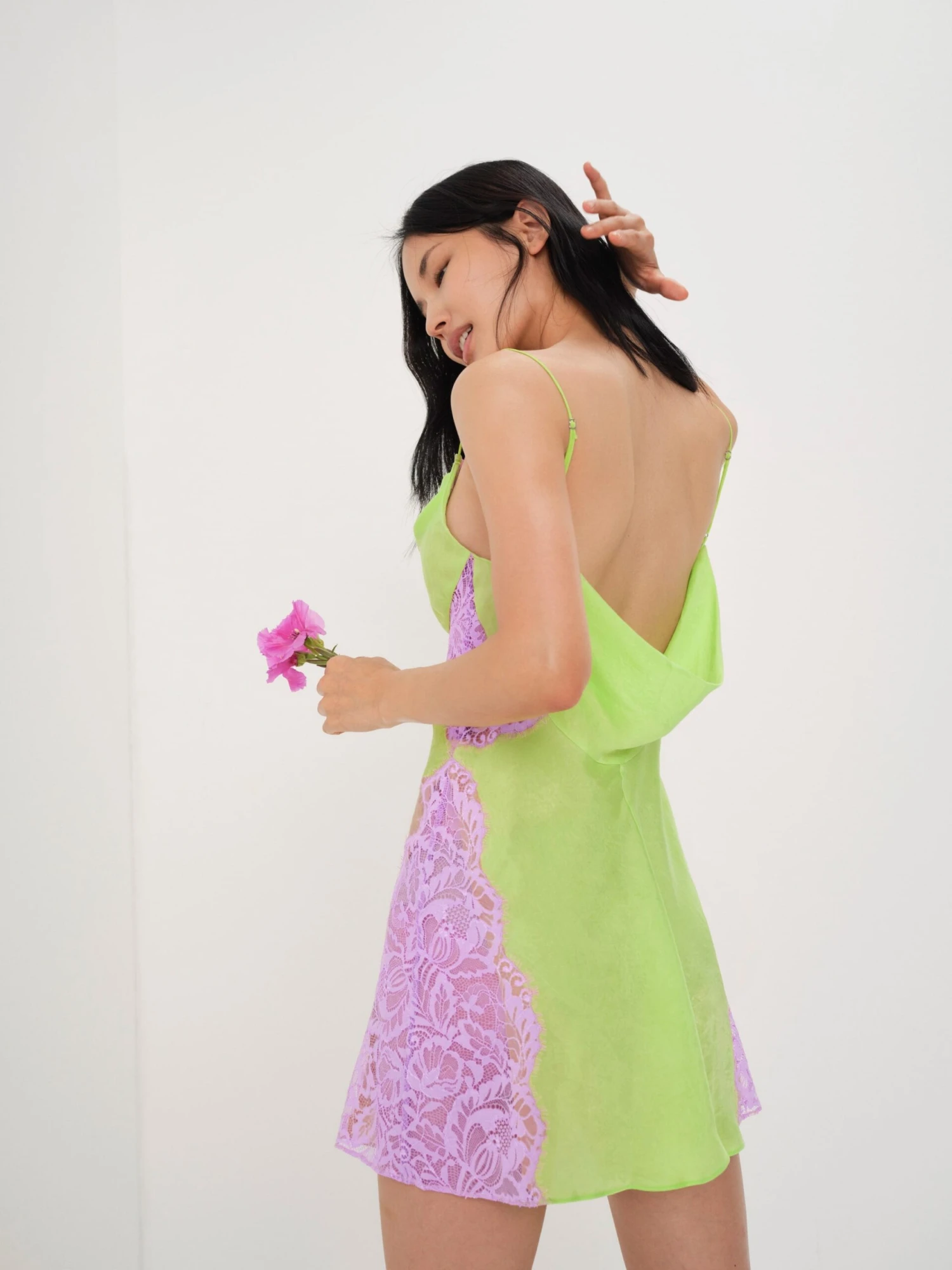 Romanticize your life. This gorgeous slip dress will cause major heart eyes every time you wear it. Featuring a draped cowl neck and back, plus sheer eyelash lace accents throughout.