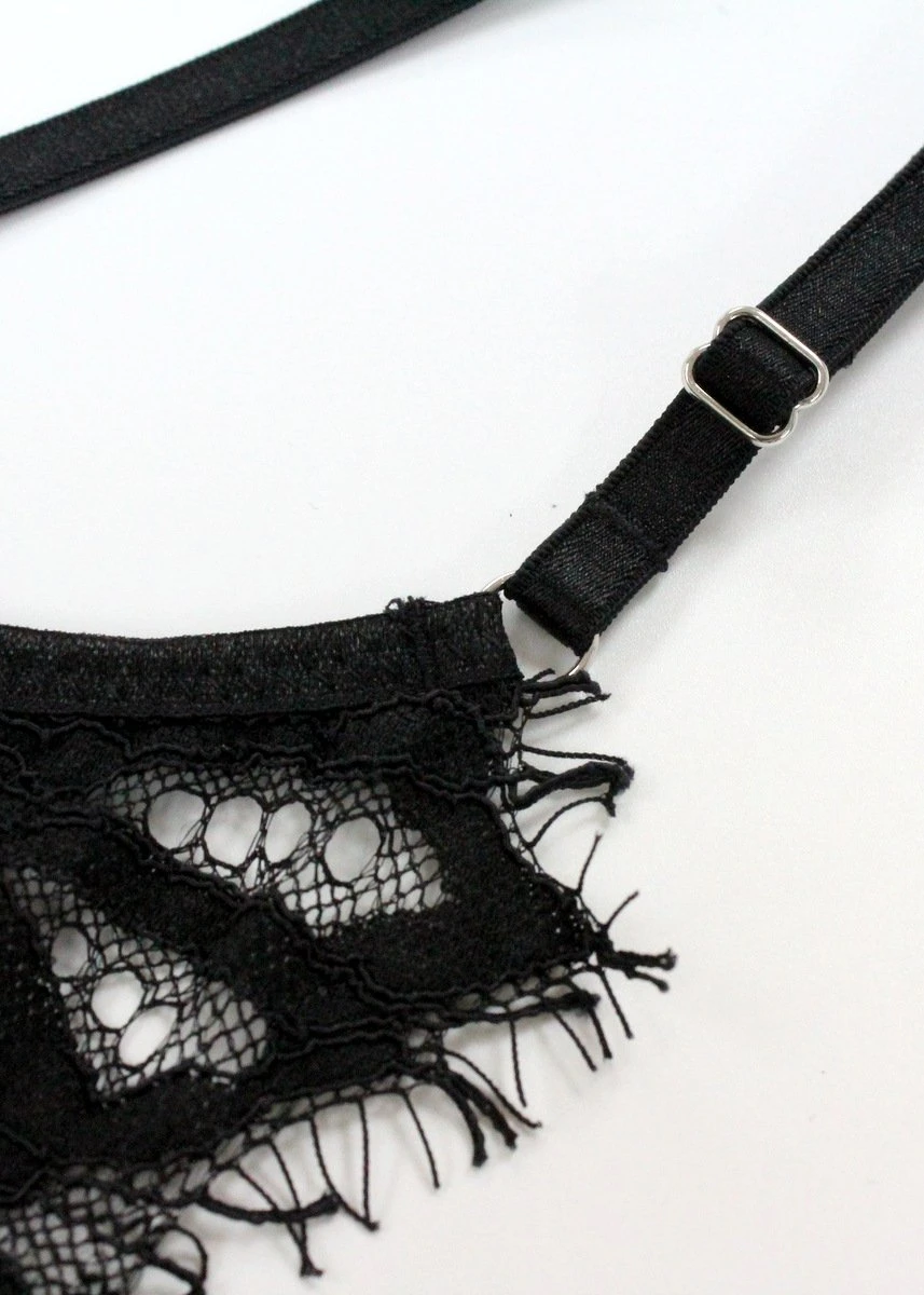 This provocative middle-waisted knicker incorporates lace and wide mesh to create a unique look, especially when it’s paired with the matching bra.