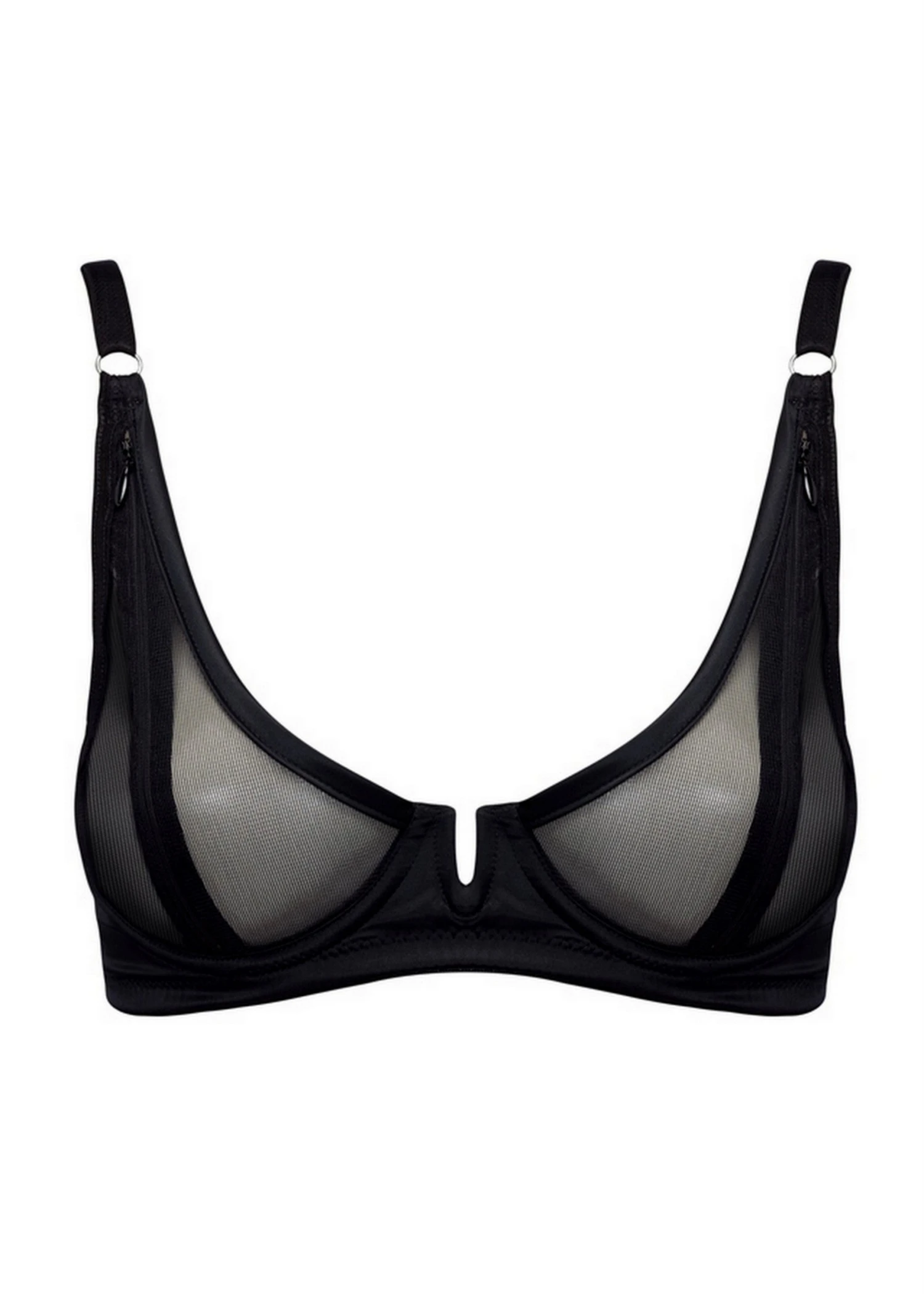 The Vena collection is strong and fierce with Lascivious’ trademark provocativeness. The Vena collection uses satin, mesh and denier to create a naughty and edgy look. The Vena bra features translucent cups with a provocative zipper running through. Keep them zipped for a more modest look or unzipped if you’re feeling naughty. The v cut out at the centre and great underwire support serves to draw attention to and enhance the cleavage.